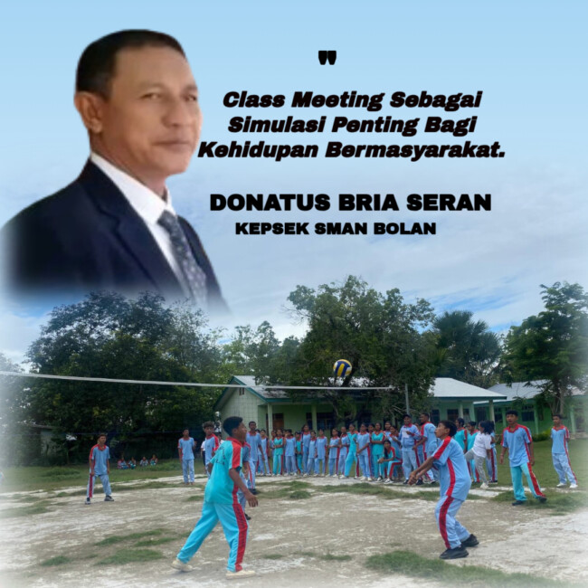 Donatus Bria Seran, Kepala sekolah SMA Negeri Bolan dalam sambutan saat membuka kegiatan Class Meeting menyampaikan apresiasi atas partisipasi seluruh siswa dan menekankan inti dari penyelenggaraan kegiatan ini.