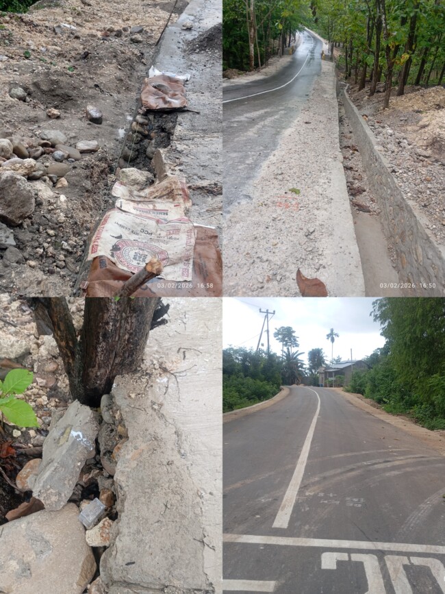 Pekerjaan ruas jalan Umasukaer menuju Balibo terlihat masih menyisakan sejumlah catatan dari masyarakat meskipun proyek tersebut telah dinyatakan Provisional Hand Over(PHO).